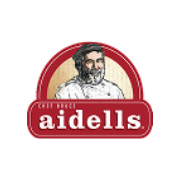 image features the Aidells logo with a sketched illustration of a chef under a red arch. The text 'Chef Bruce' and 'aidells' is clearly visible in white on a red background